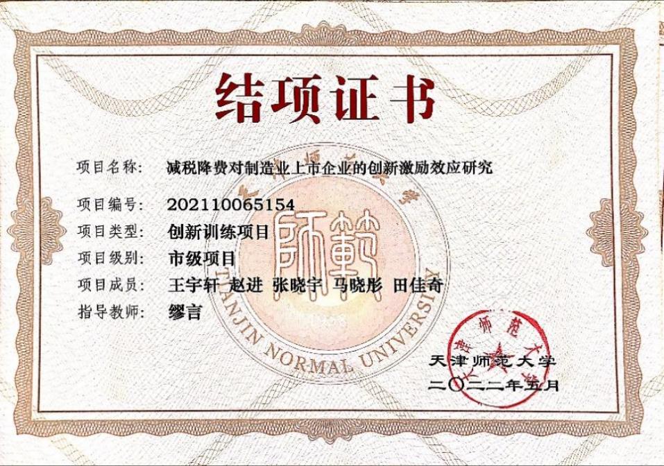 二、培养学生创新创业意识,积极参与“双创”项目。投资学系教师积极鼓励、组织学生参与各类项目大创项目,促进“双创”教育走深走实。通过师生共同探讨确定选题、逐条逐项修改项目申请书、认真演练校级答辩,投资学系教师指导学生获得了大学生创新项目国家级创新项目1项,获得省部级创新项目2项,获得省部级创业项目2项,在第三届中国“互联网+”大学生创新创业大赛全国总决赛中,由投资学专业同学参与的项目“天津市丹环科技发展有限公司”获得全国总决赛铜奖。