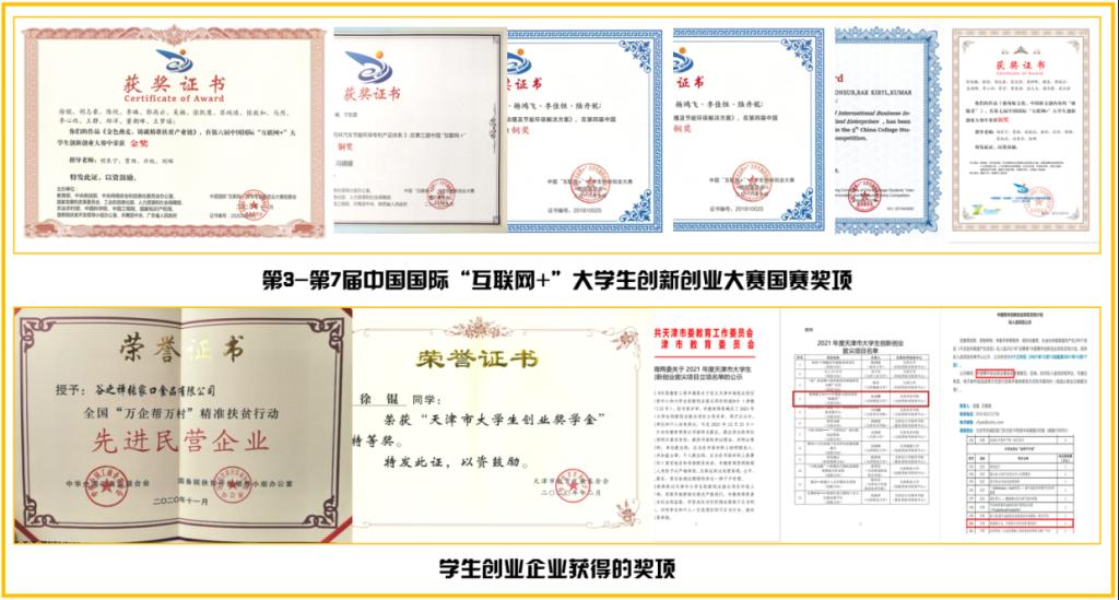 2017年以来,学生创业实践团队先后参加第3届至第7届中国国际“互联网+”大学生创新创业大赛,共荣获国赛金奖1项、铜奖6项,天津市赛金奖6项和其他奖项9项;“创青春”、“挑战杯”、“创客马拉松”等大赛共获得天津市赛金奖2项、其他奖项10项。教师团队指导孵化学生创业企业7家,其中,荣获全国“万企帮万村”精准扶贫行动先进民营企业称号1家;入选团中央青年创业金种子计划和天津市教育两委大学生创业拔尖项目各1项;获评天津市创业奖学金特等奖2人。被聘为中国国际“互联网+”大学生创新创业大赛国赛网评专家和总决赛现场专家1人、中国青年创业导师1人;365best体育亚洲官网创新创业导师1人;内蒙古大学、北京农学院等国内高校创新创业师资培训导师和项目指导专家2人。