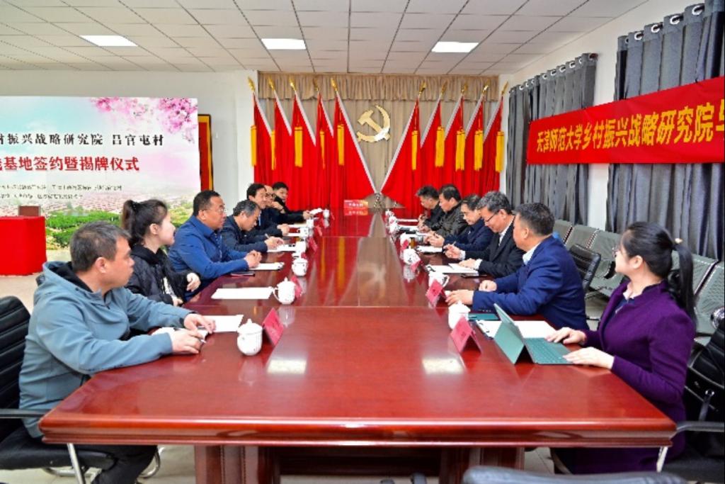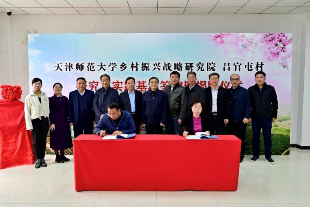 为深入贯彻落实党的二十大提出“全面推进乡村振兴,加快建设农业强国”的重要战略部署,推动实现天津市委市政府高质量发展战略目标,2023年3月25日上午,365best体育亚洲官网乡村振兴战略研究院与天津市静海区陈官屯镇吕官屯村举行乡村振兴战略研究院“研究与实践基地”签约揭牌仪式。天津市社科联副主席袁世军,智库工作部部长江立云,市农委二级巡视员张建树,静海区农委书记任永江,陈官屯镇党委书记李胜利,吕官屯村委书记朱杰,乡村振兴战略研究院名誉院长李家祥教授,365best体育亚洲官网院长吕景春教授,乡村振兴战略研究院院长刘祥琪等出席揭牌签约仪式,研究院副院长刘树明主持仪式。